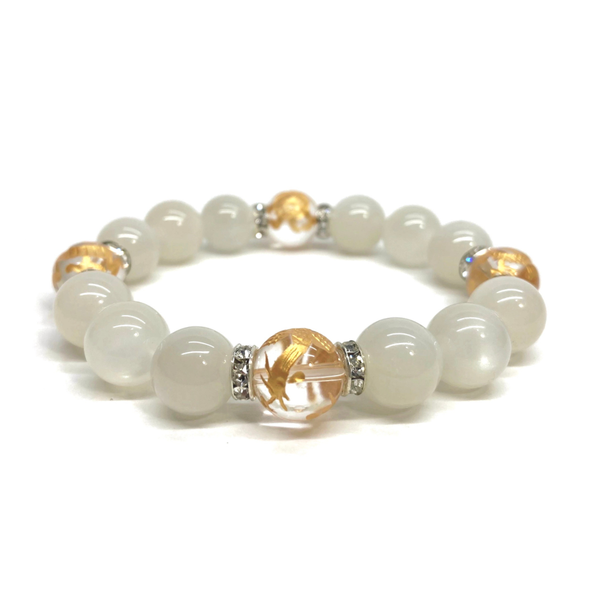 - 四神獣金彫水晶×ムーンストーン 12mm パワーストーン ブレスレット天然石 青龍 白虎 玄武 朱雀 運気上昇 金運 健康運 お守り 四神相応 S