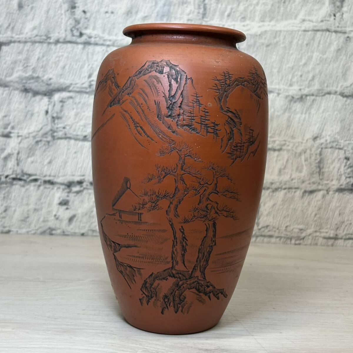 - 【YH-3713】保管品 常滑焼 朱泥 花器 花瓶 箱無し