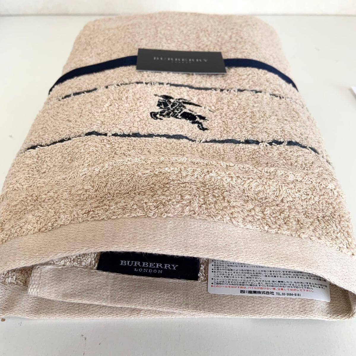 - 未使用 BURBERRY バーバリー バスタオル 約60×120cm 綿100% 日本製 ロゴ ホース刺繍 タオル 厚手 西川産業
