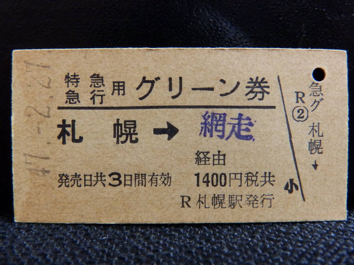 - ★日本国有鉄道(国鉄)特急急行用グリーン券 札幌→網走 昭和47年2月27日 札幌駅発行 0124
