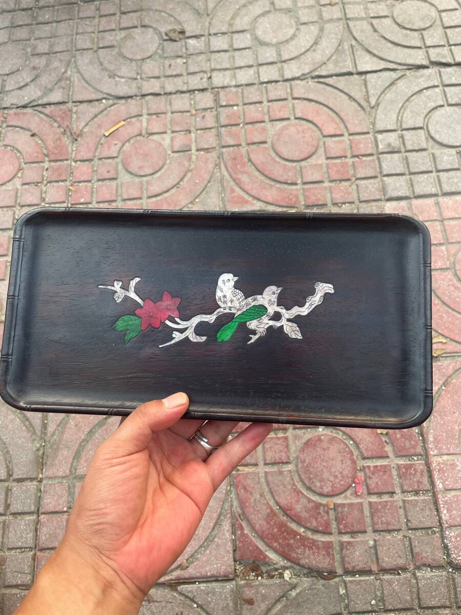- 蔵友旧蔵出 黑檀木製 細密彫 貝殼嵌 喜上枝頭紋 果盤 文房具 供養品 置物擺件 稀少珍藏品 古賞物 中国古玩 中国古美術品