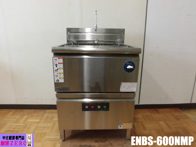- 中古厨房 ニチワ 業務用 電気 1槽 ゆで麺機 ENBS-600NMP 三相 200V 3テボ スパゲッティ ボイラー 蛇口付き W600×W600×H795mm 2022年製