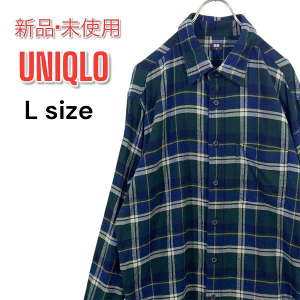 > 【未使用品】UNIQLO ユニクロ ネルシャツ Lサイズ チェック 綿100% グリーンブルー 緑青