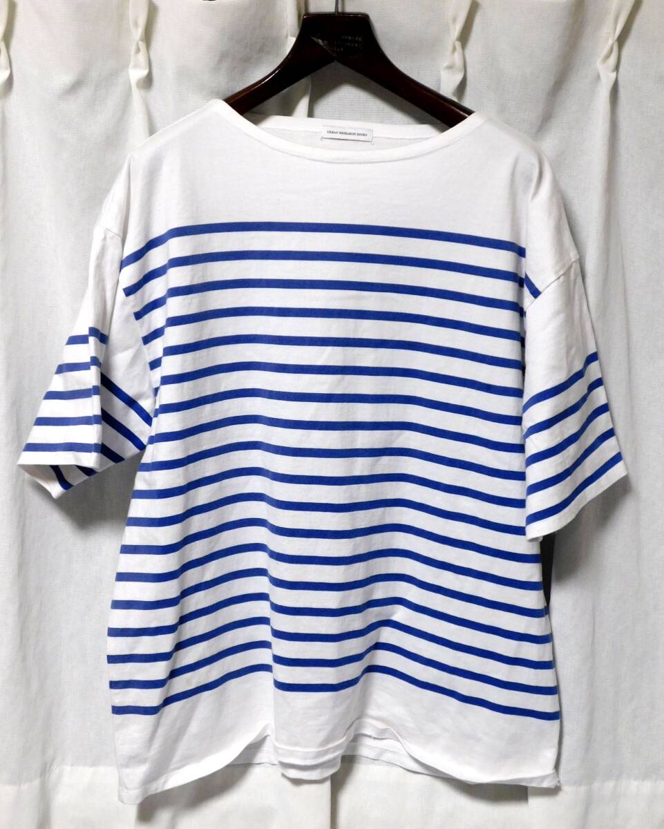 > URBAN RESEARCH DOORS アーバンリサーチ コットン100% ボーダー 紺x白 薄手バスクシャツ 半袖 ¥480