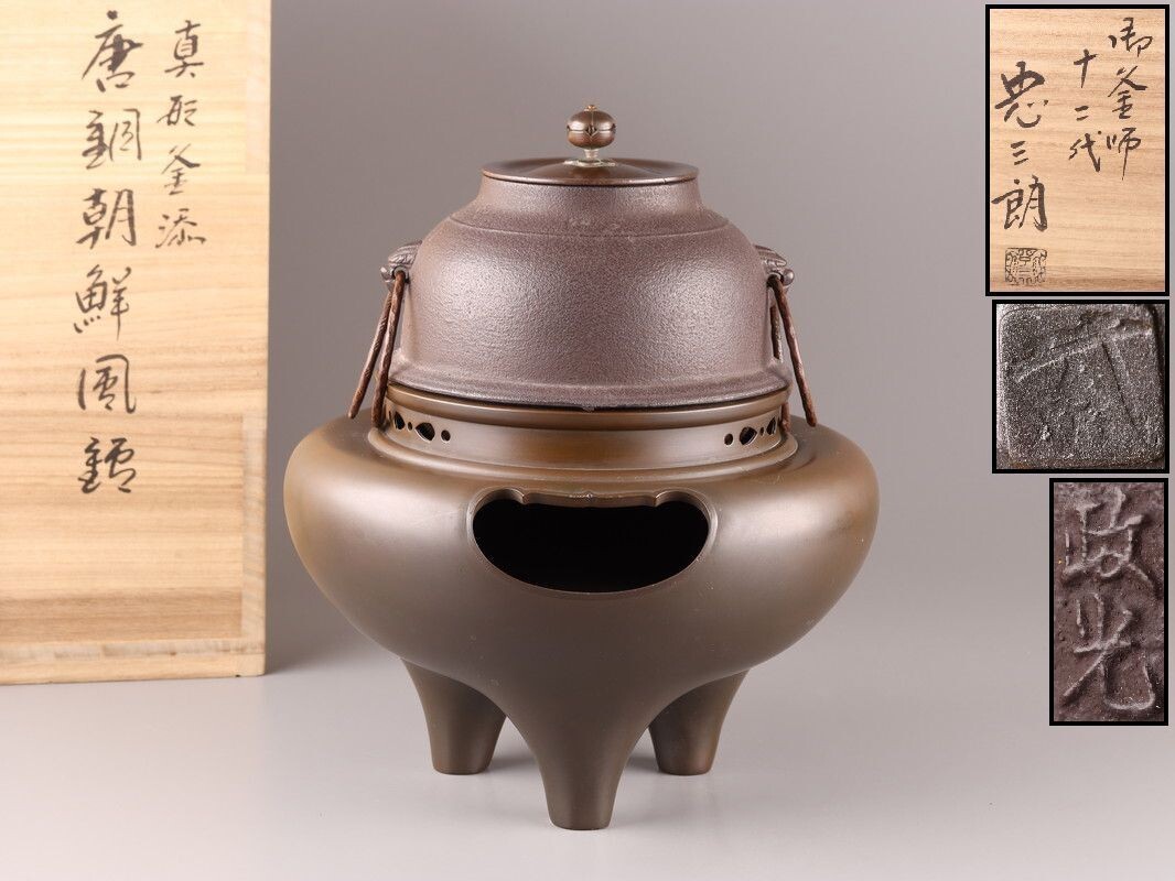 - 茶道具 唐銅 朝鮮風炉 加藤忠三郎 在印 共箱 極上品 初だし品 D4471