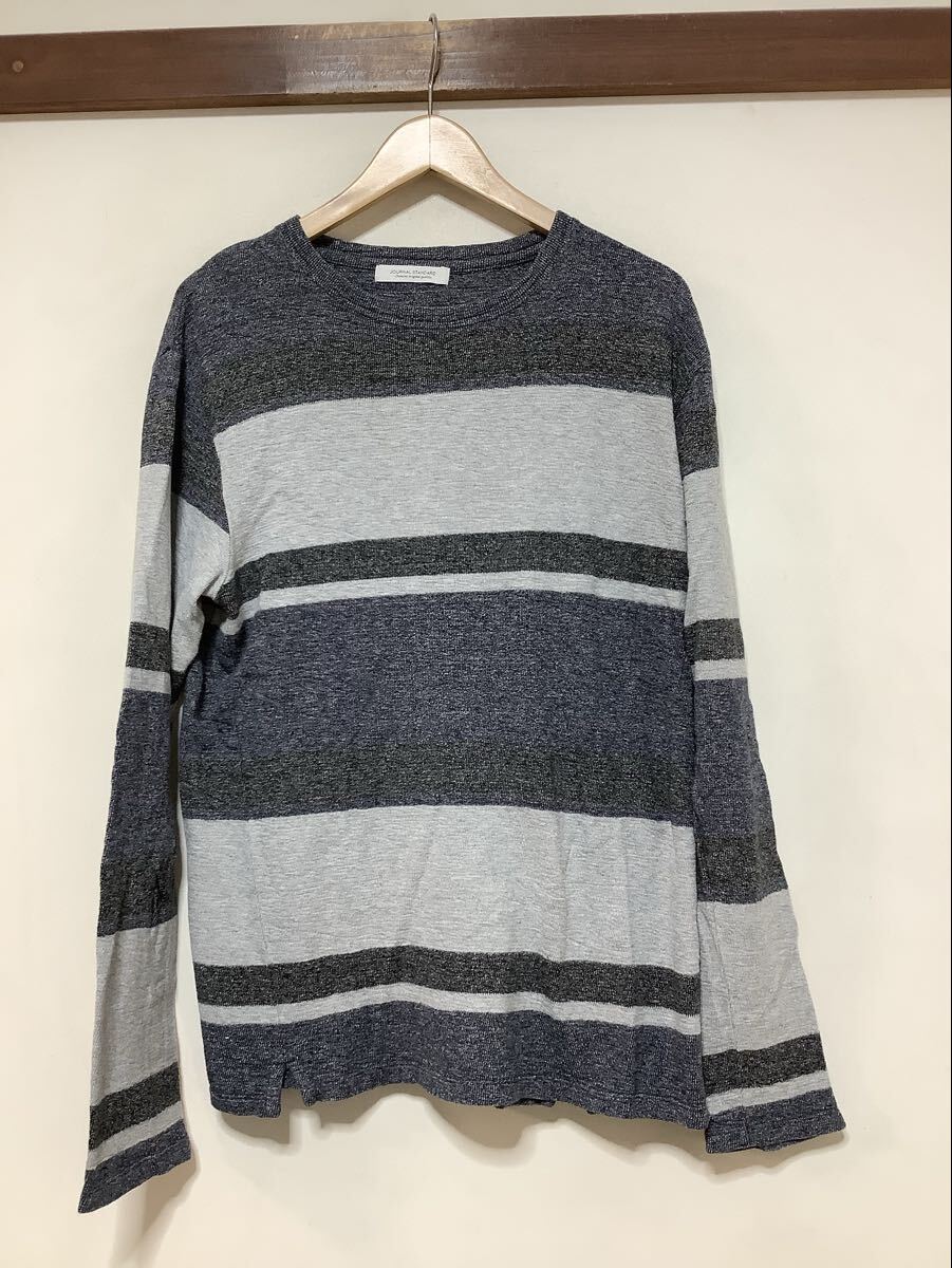 - か1713 JOURNAL STANDARD ジャーナルスタンダード ボーダー 長袖Tシャツ Lサイズ ニットテイスト ネイビー/グレー/ライトグレー