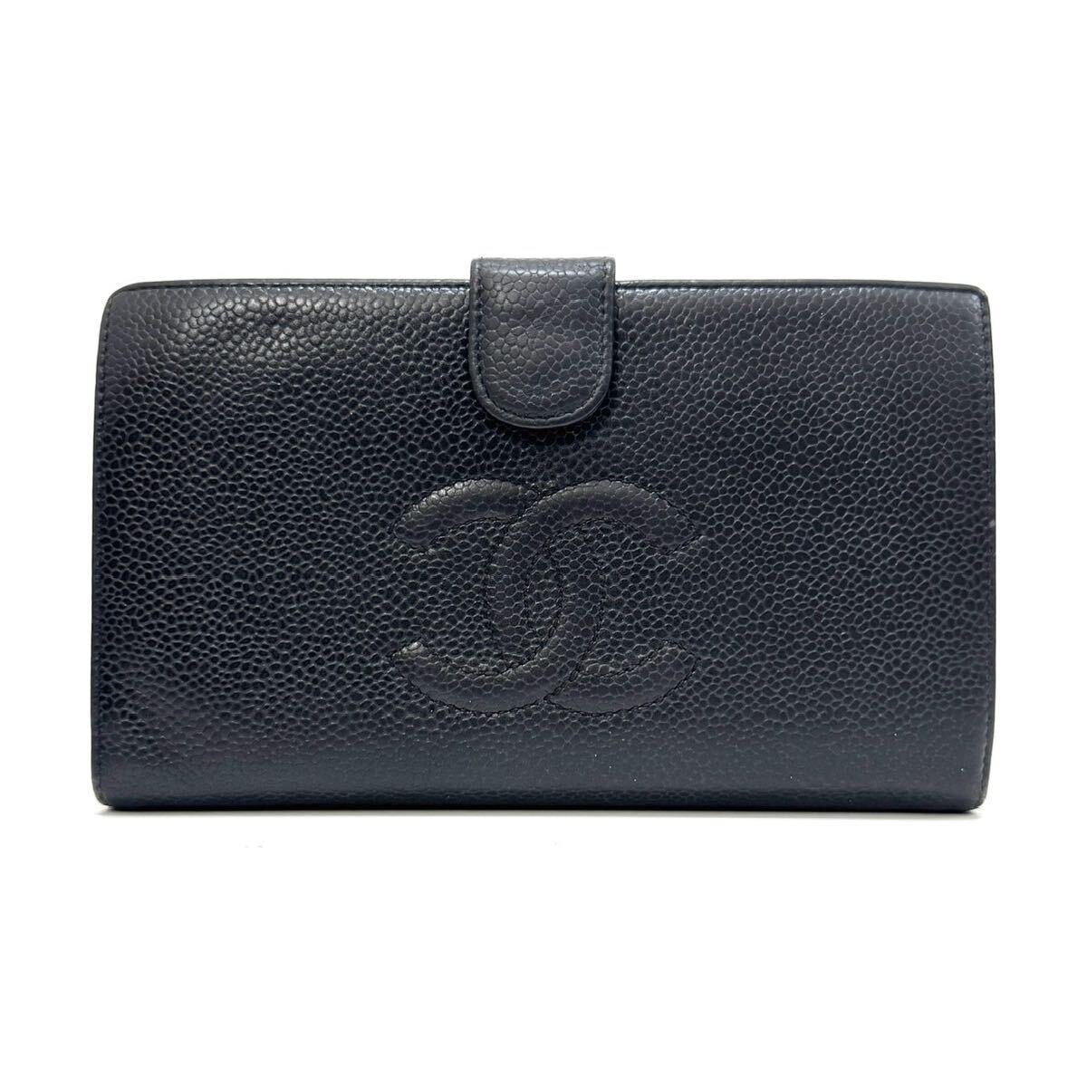 > シャネル 長財布 ロングウォレット 二つ折り財布 ブラック 黒 ゴールド レザー 本革 キャビアスキン ココマーク がま口 CHANEL