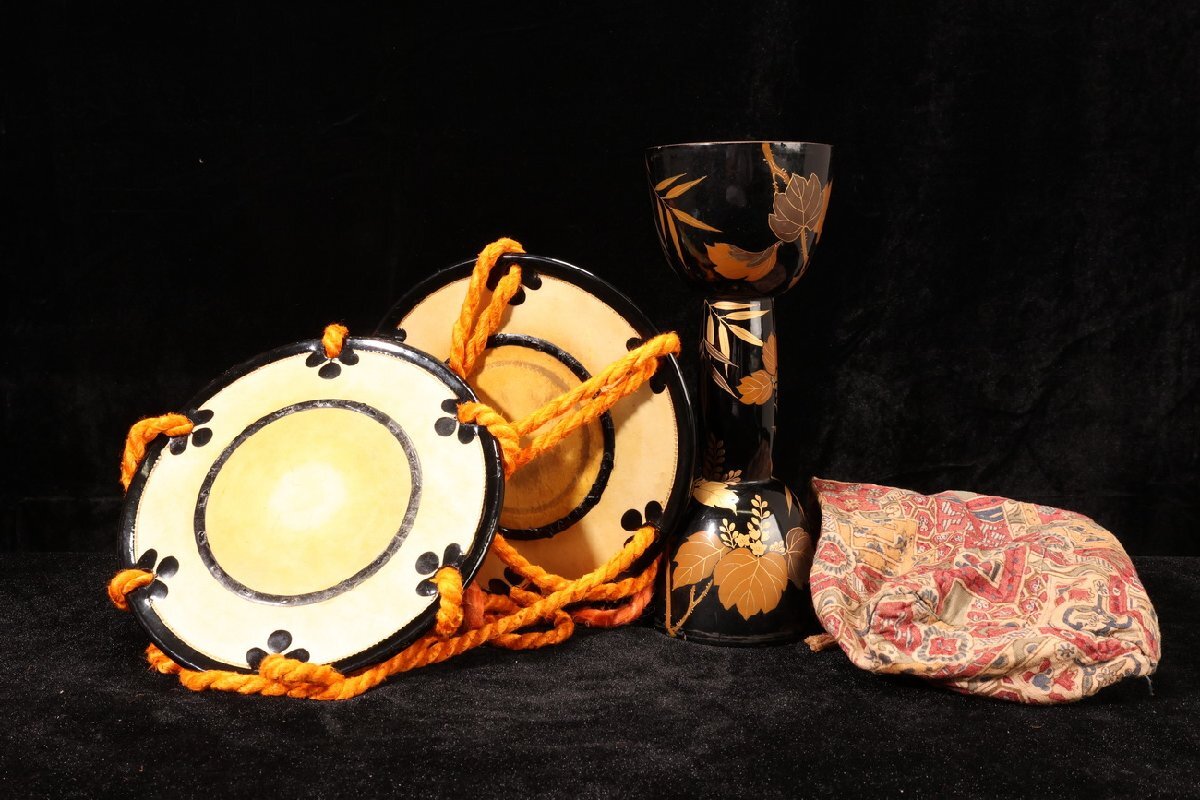 - 【珍品堂】1円から Y36-V20 小鼓 葉紋蒔絵 鼓 打楽器 和楽器 能楽 雅楽鼓 漆塗 古道具 民藝 小鼓 和楽器 鼓 皷 つづみ