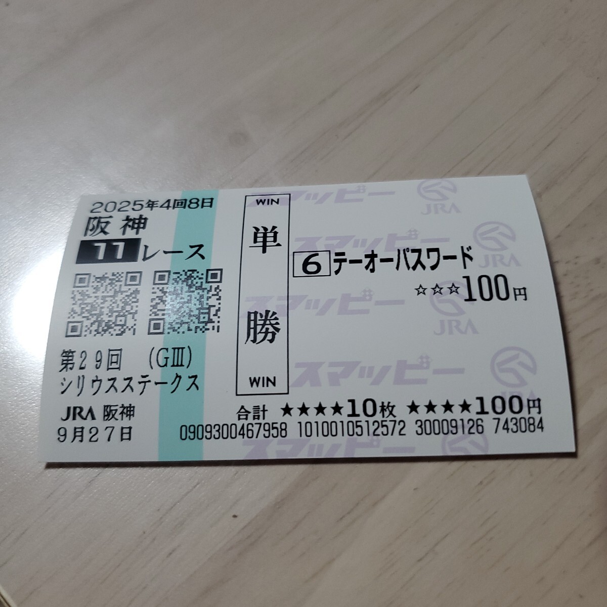 - 現地購入第29回シリウスステークススマッピー版テーオーパスワード