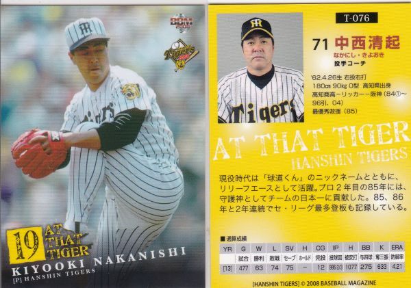 - ●2008BBM/阪神 【中西 清起】 AT THAT TIGER:投手コーチ No.T-076 R2