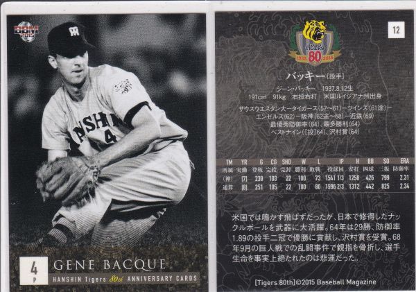 - ●2015BBM/阪神 80周年 【バッキー】 BASEBALL CARD No.12 R4