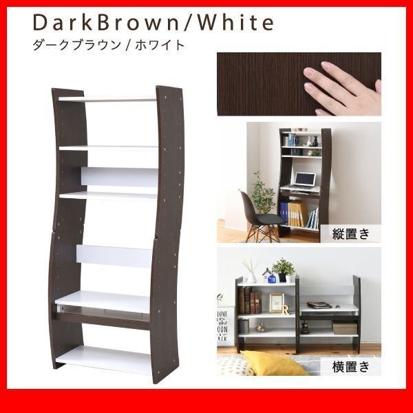 > 机★新品/4WAYパソコンデスク 学習机/ハイ 椅子仕様 ロー 座卓 縦置き 横置き/可動棚 幅60cm 省スペース スリム/白×ダークブラウン/a1