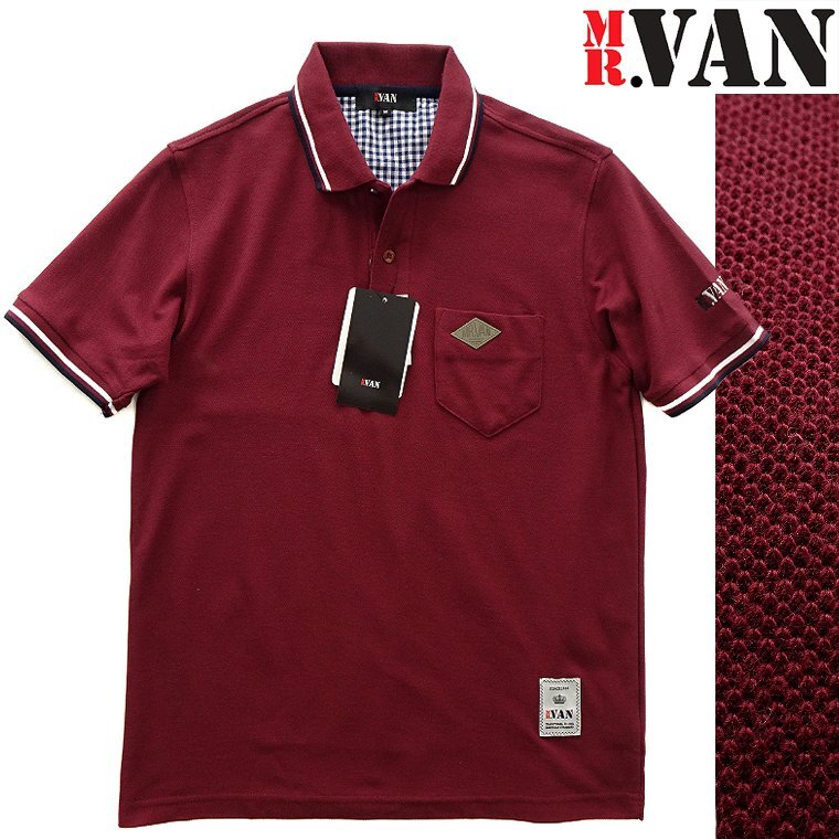 - 新品 ミスターヴァン 2023春夏 ライン 鹿の子 半袖 ポロシャツ M ワイン 【va1932041_39_M】 MR.VAN 盛夏 メンズ カジュアル スポーツ
