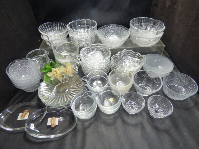 - む521【大量】40点以上 ガラス食器色々 HOYA iittala 豆鉢 小皿 深皿 輪花皿 シェル型 リーフ柄 オーバル レトロ 高台等