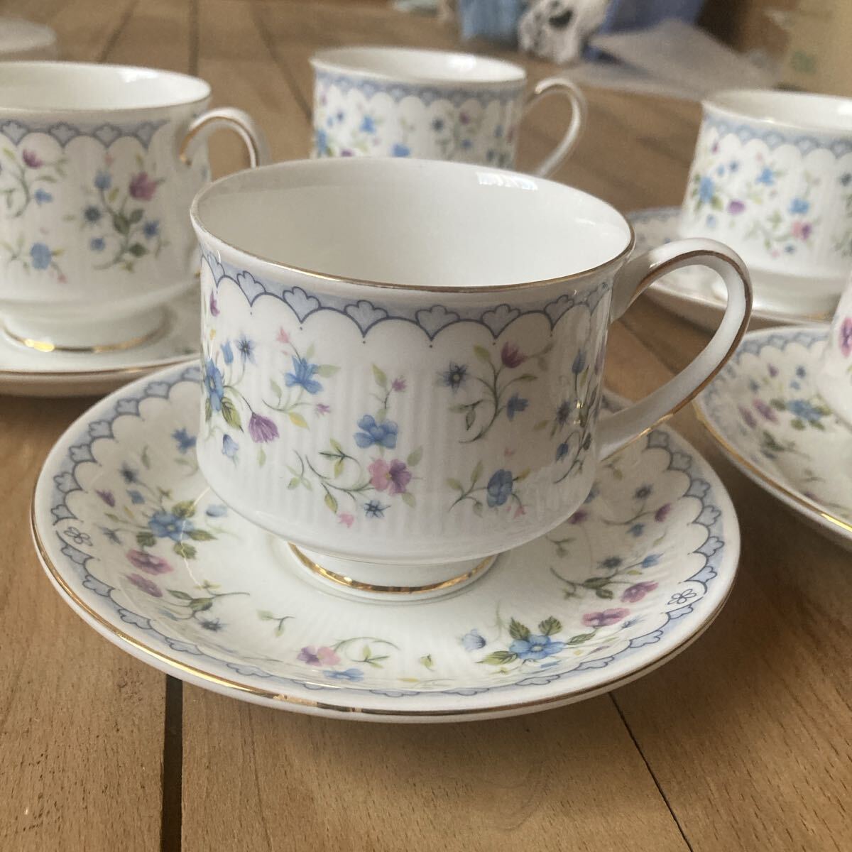 - 英国アンティーク PARAGON カップ&ソーサー すみれ 小花柄 5客 花柄 ヴィンテージ セット レア