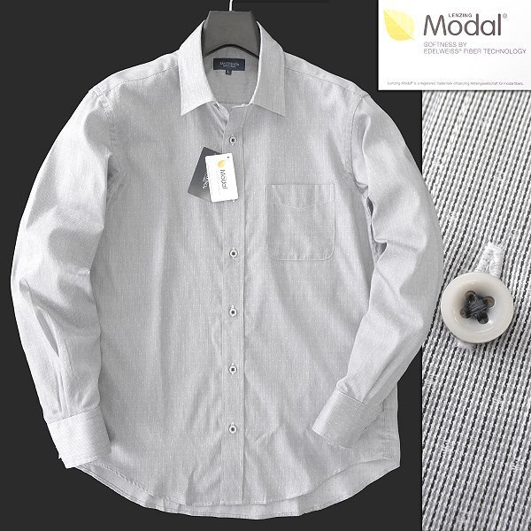 > 新品 サントレノ モダール ドビー ドット 長袖 シャツ L 灰 【AHE172_830_L】 SAN TRENO メンズ 織り柄 オールシーズン コットン