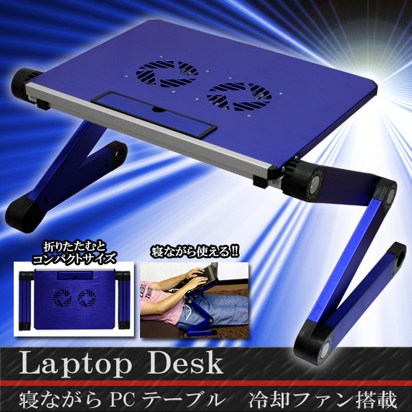 - 【寝ながらデスク】冷却/パソコンデスク/PCデスク/高さ調整可