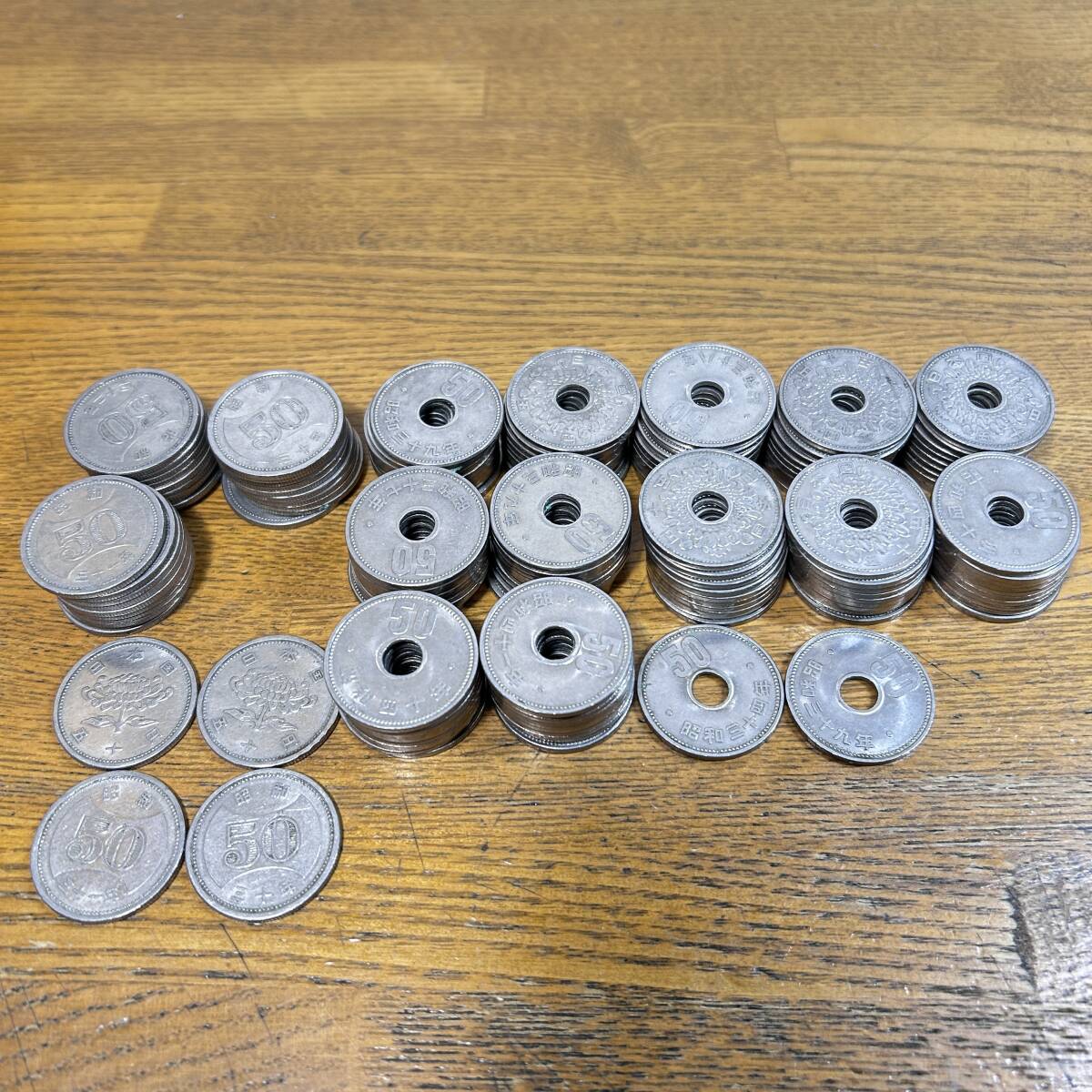 - 昭和30年等 穴無し 50円硬貨 34枚 同 34年等 穴あき 50円硬貨 122枚 都合 額面 7800円分まとめて くすみ 傷 緑青 擦れ有り