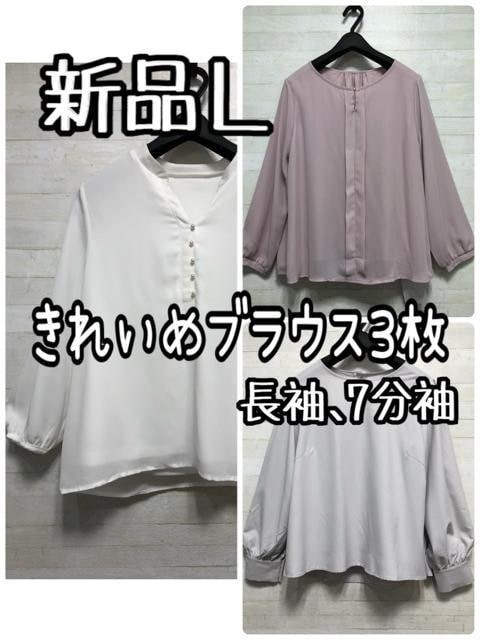 - 新品☆L♪きれいめブラウス3枚まとめて♪長袖・7分袖♪上品ブラウス☆Q377