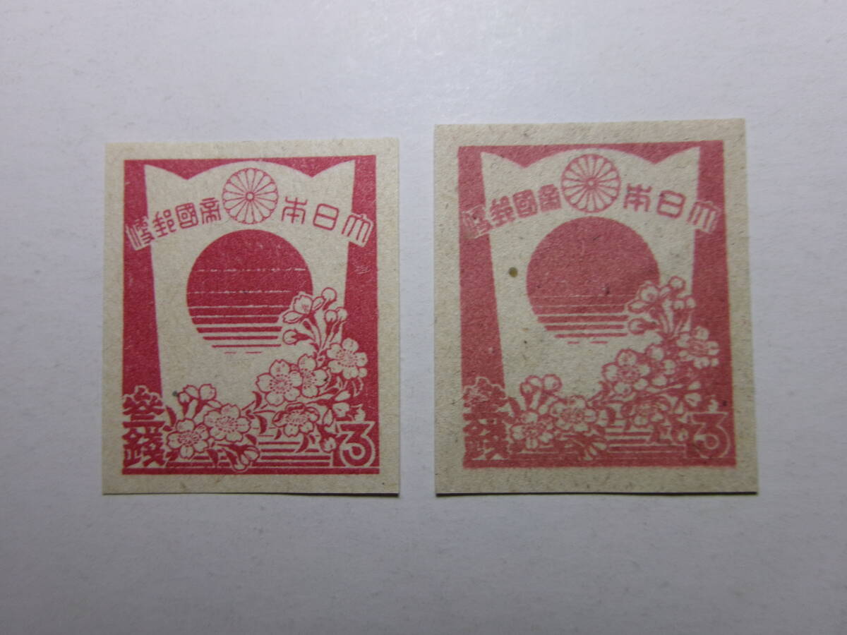 - 3次昭和切手 楯と桜 3銭 灰白紙・粗紙 紙違い 未使用