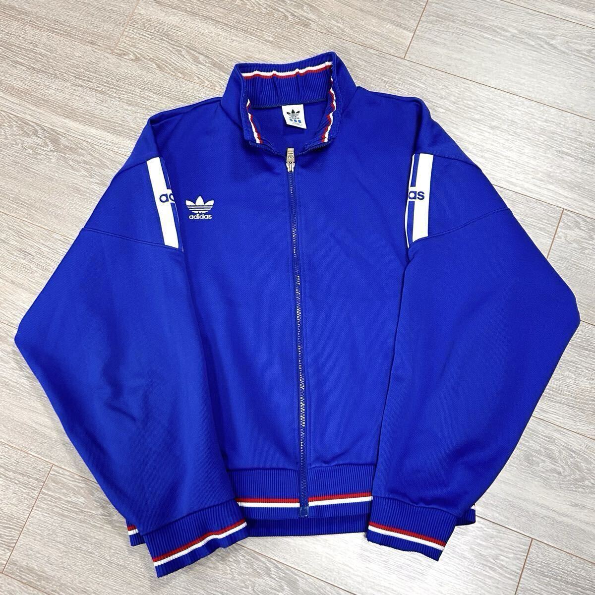 > 1円〜 adidas アディダス トラックジャケット ジャージ トレフォイルロゴ 刺繍ロゴ デサント製 ATS-500 ブルー ヴィンテージ 90s メンズ