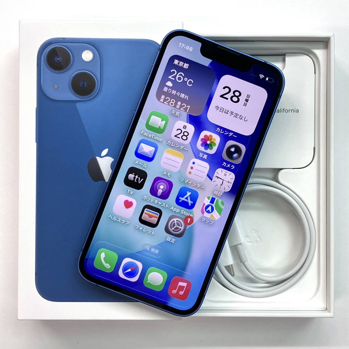 > ★シャッター音無し★海外版 SIMフリー Apple アップル iPhone13mini 128GB ブルー 純正バッテリー最大容量90% 利用制限判定〇 即決★
