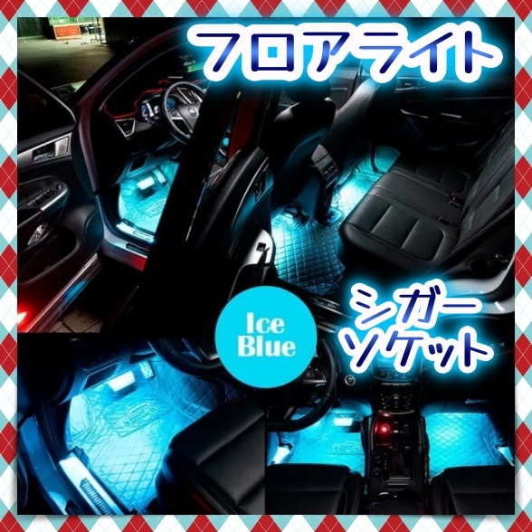 > 2本 LED フロアライト アイスブルー シガーソケット スイッチ付き 足元 照明 装飾 電装パーツ LEDテープ イルミネーション 12V 汎用