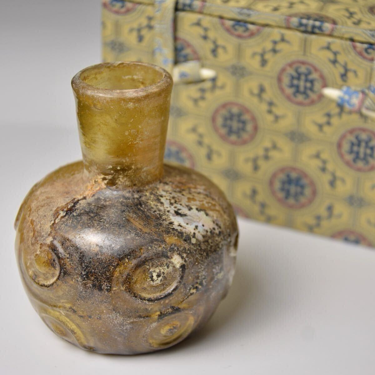 > 小舫 唐時代六朝 琉璃瓶 ガラス 検:古美術 骨董 中国 置物 時代物 花瓶 茶道具 置物 古代ガラス 酒器 置物 陶器 茶碗b0411