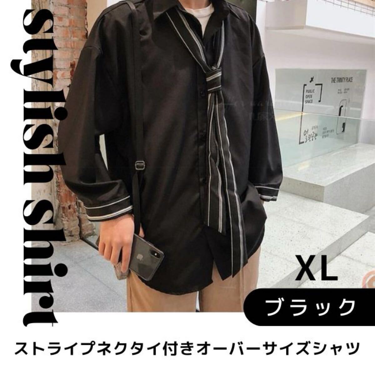 - 【モード系オーバーサイズ】 黒ネクタイ付きシャツ
