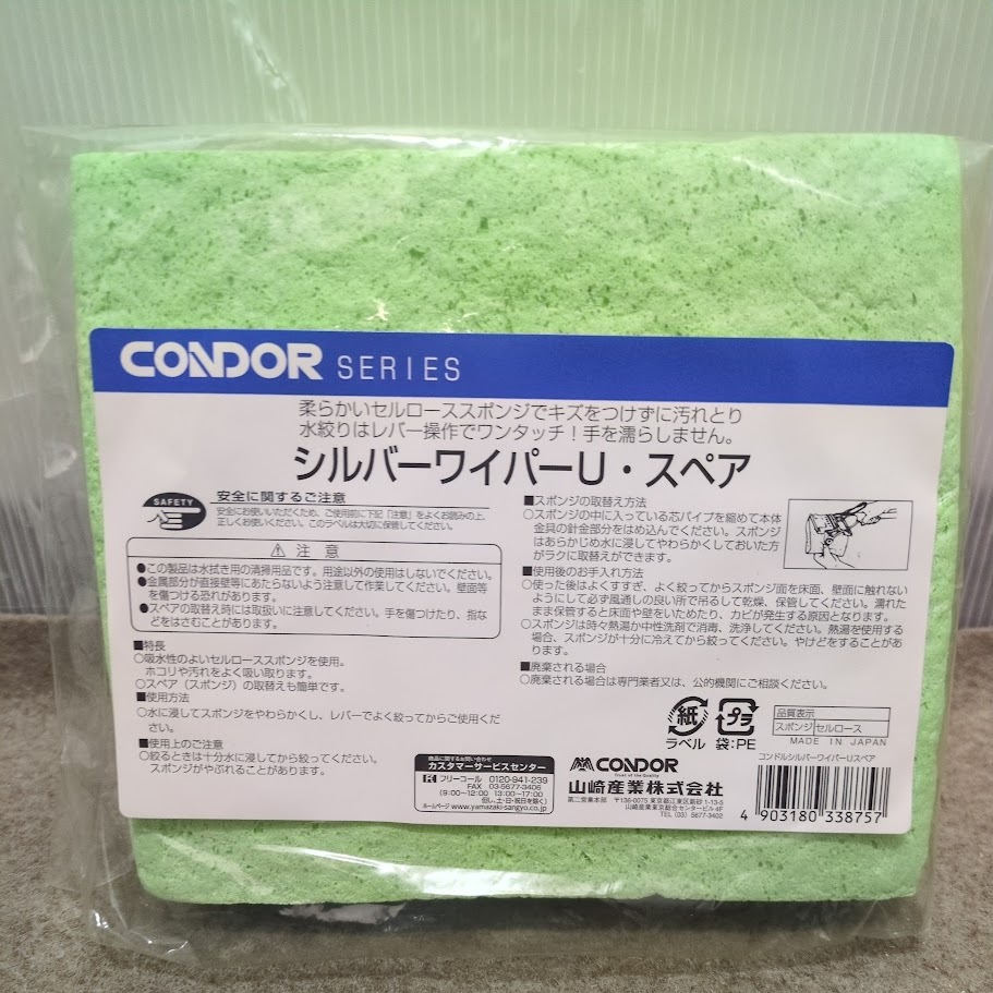 - 山崎産業 スポンジモップ 水拭き 吸水 絞り機能付き コンドル シルバーワイパー U 交換 スペア 338757 8個