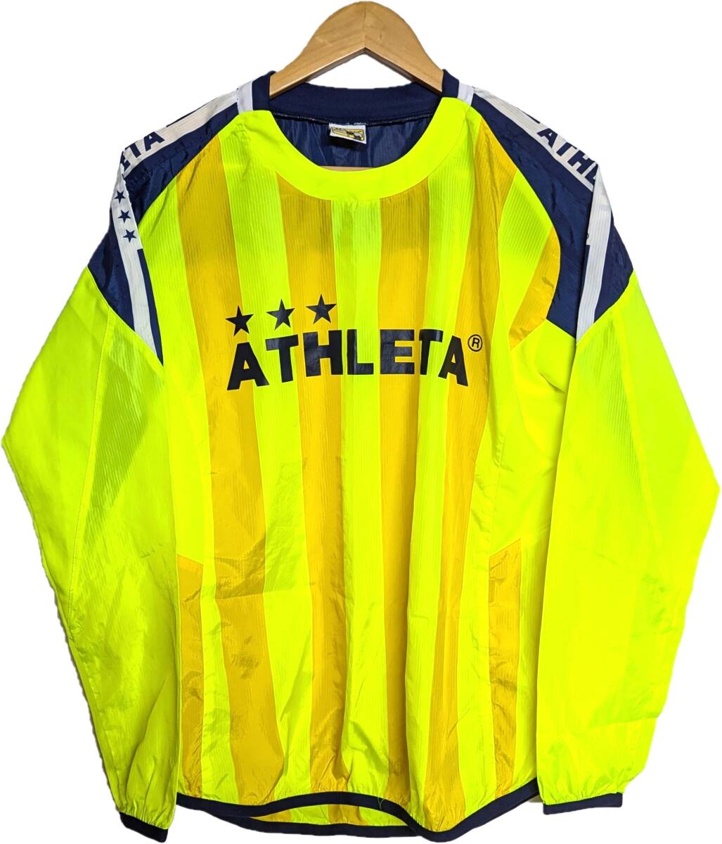 > タグネーム記入あり アスレタ ATHLETA ピステシャツ S イエロー 黄色 蛍光色 薄手 軽量 プリント メンズ 男性 サッカー シャツ ウエア
