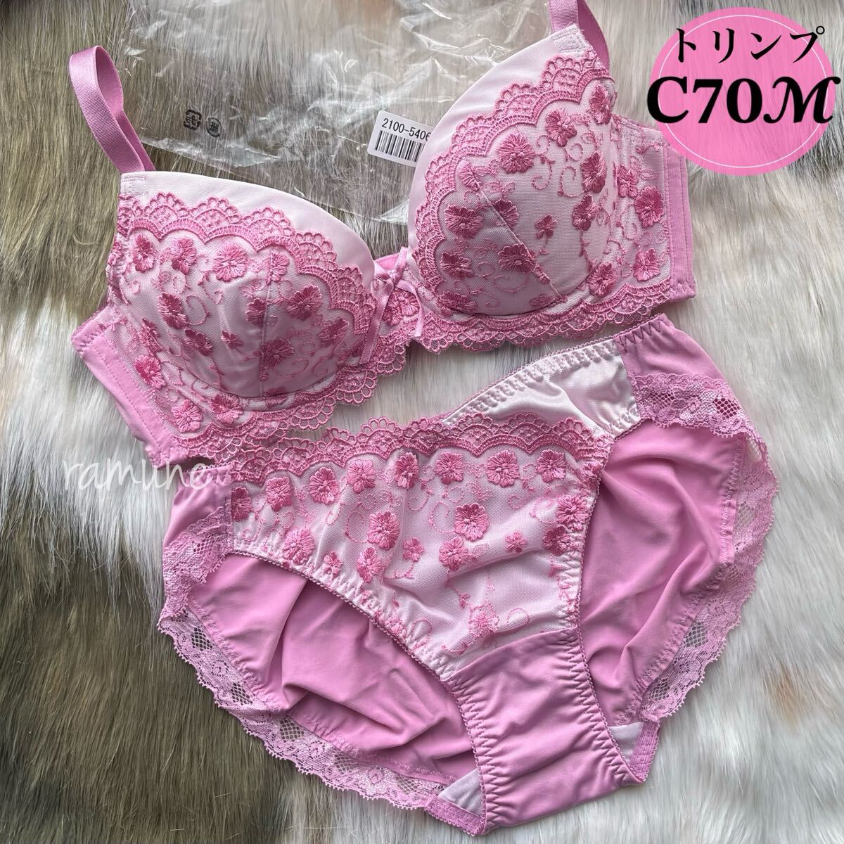 - 【トリンプ C70-M ピンク】新品 Triumph ブラジャーショーツセット パッド付き 上向きバスト 寄せ上げブラ かわいいパンティ Cカップ