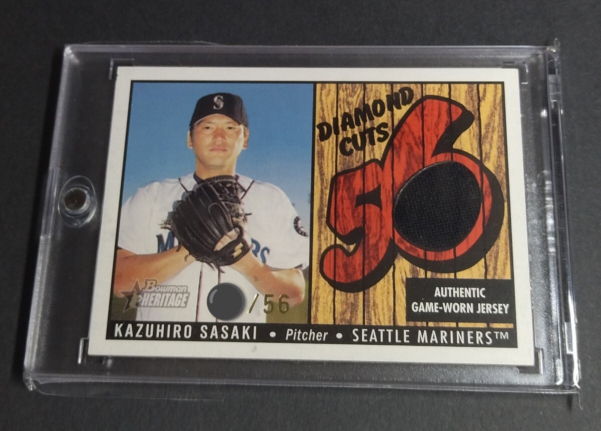 > MLB 2003年Bowman heritage 佐々木主浩(マリナーズ)56枚限定 GAME-WORN JERSEY。Diamond Cut Relics Red No,DC-KI。 KAZUHIRO SASAKI
