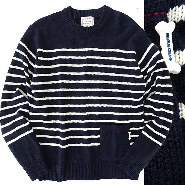 - 新品 シェルティークラブ ボーダー クルーネック ニット LL 紺 【SH444339_79_LL】 秋冬 Sheltie Club ウール混 洗える ウォッシャブル