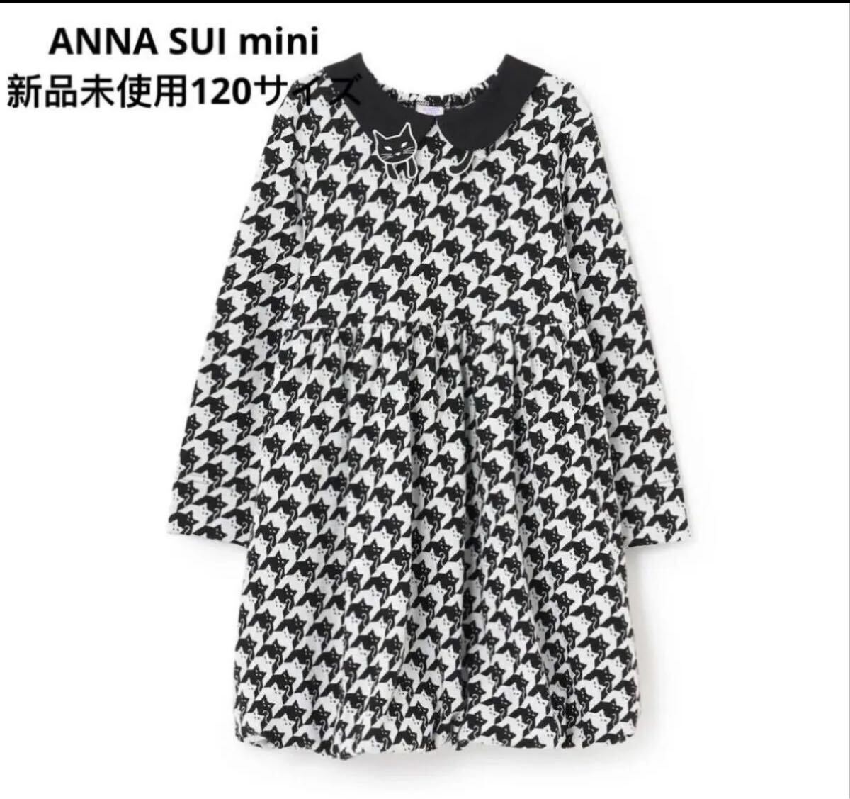 - ANNA SUI mini ネコ千鳥柄ジャガードバルーンワンピース