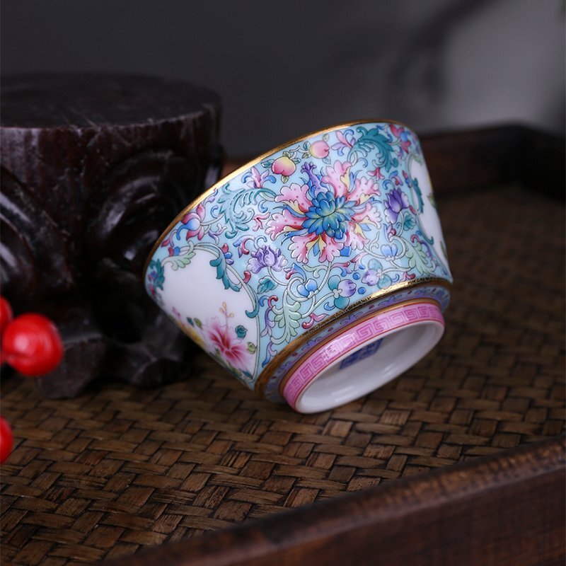 - 琺瑯彩 茶碗 浮き彫り 景徳鎮製 磁器 置物 観賞 装飾 中国陶磁 中国美術 収蔵品 鑑賞 中国美術品fgcq020