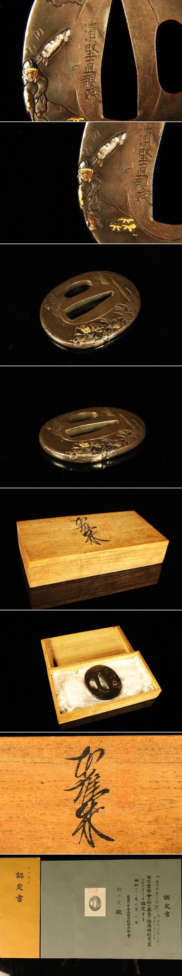 ![【ASAHI】特別貴重鑑定書 江戸三作の名金工 浜野派「(浜野)濱直親」赤銅地金銀象嵌唐人物図鋤出高彫象嵌色絵鍔 [79167ie]拍卖](http://yahooimg2.ymibuy.cn/i/auctions.c.yimg.jp/images.auctions.yahoo.co.jp/image/dr000/auc0109/user/0a29af6b5dc83a660c684b014424dd4c42c50c8219a4995f4cdee80b9cd1e996/i-img1200x1064-17589651738758rlb4zq434134.jpg)