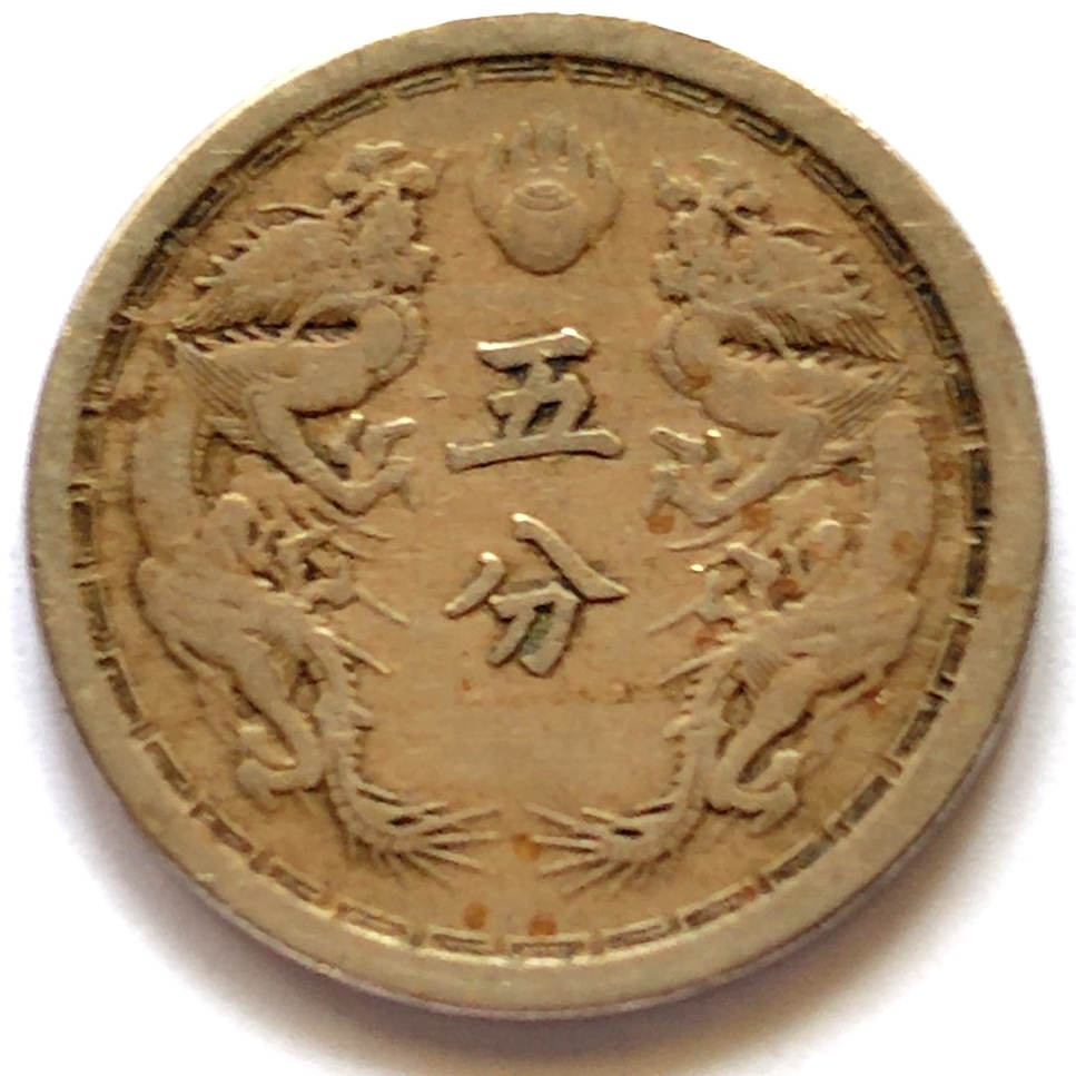 - 満州国貨幣 五分 白銅貨 大同3年 日本在外貨幣 真贋不明