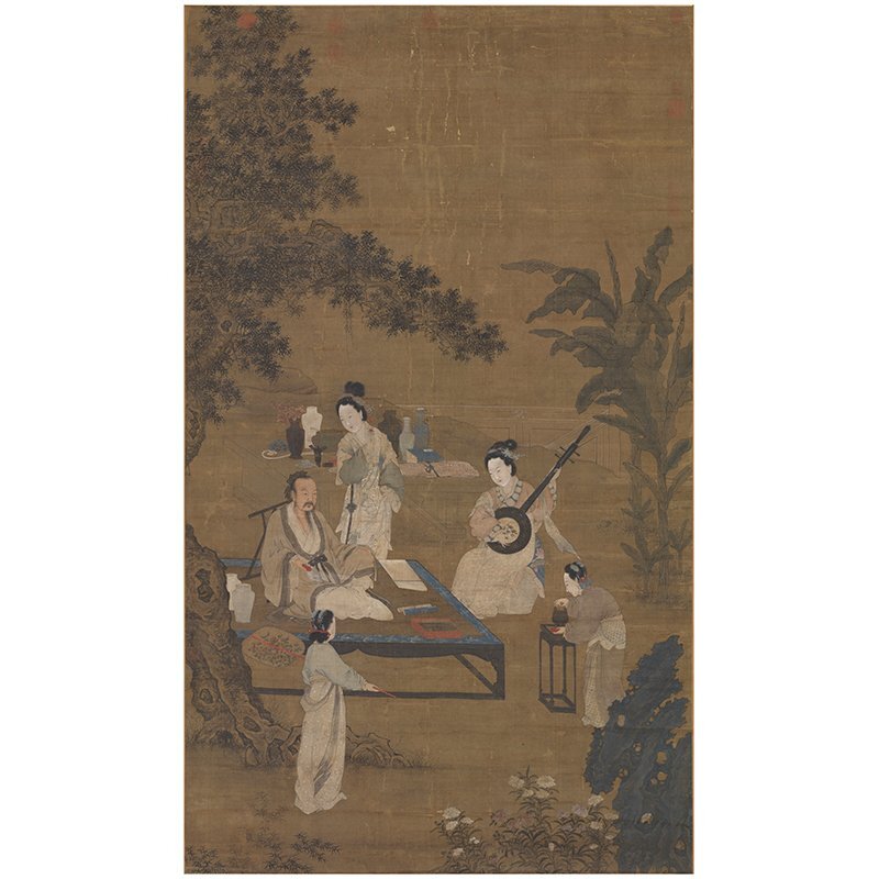 - 聴阮図 名家 宋 李嵩 聴琴楽器 仕女図 絹本 東洋画 中堂画 掛け物 未表装 zhzx074