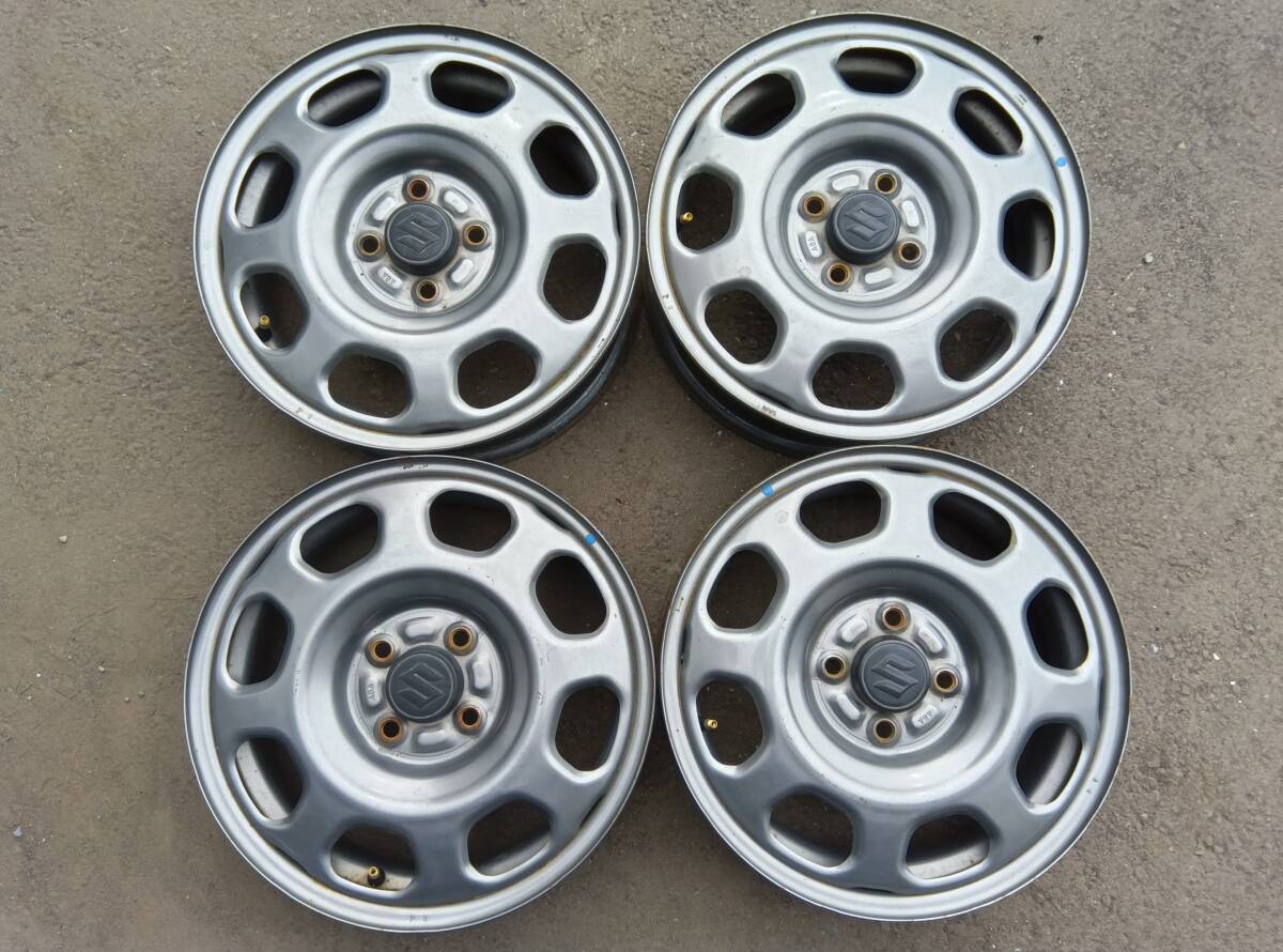> No.2123【スズキ純正 15インチスチールホイール】15×4.5 PCD100 4穴 OFF不明 軽自動車等