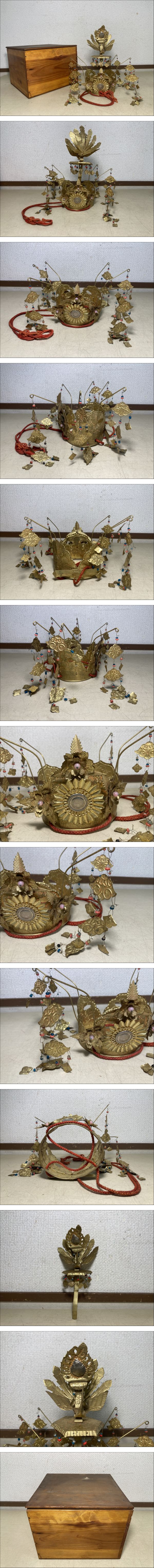 > 京都10☆ 天冠 帽子 装束 髪飾り礼冠金冠 鳳凰 巫女衣装 高さ 約24cm 横幅 約25cm 現状品 アンティーク コレクター アイテム