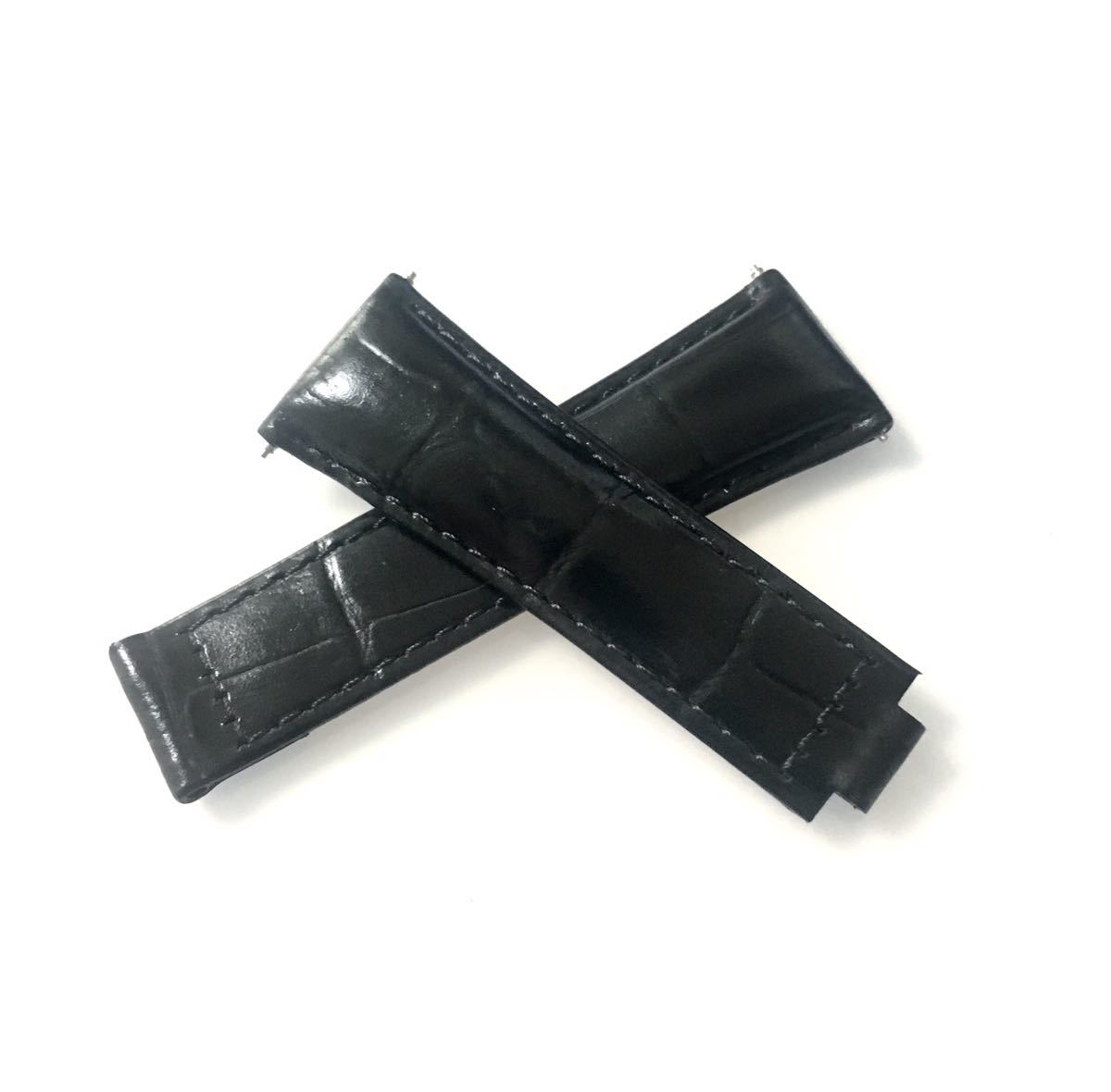 - 腕時計 イタリアンカーフレザー 革ベルト 20mm ブラック ロングサイズ 黒 片凸【対応】ロレックス サブマリーナ デイトナ等 Rolex