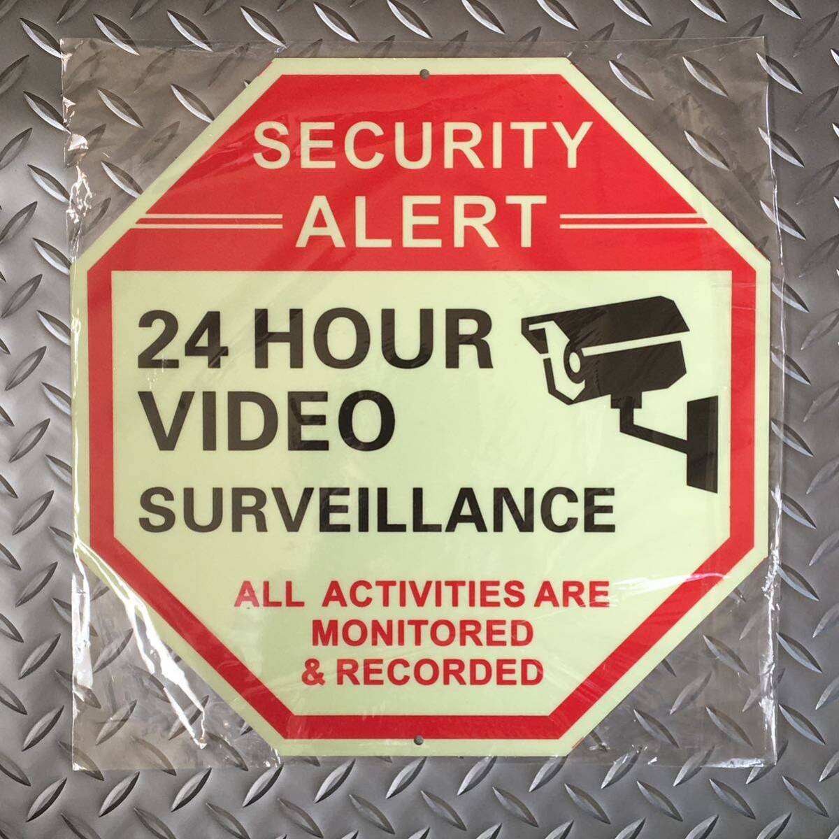 - セキュリティーアラート看板◆24時間ビデオ監視中 アメリカン ガレージインテリア 防犯カメラグッズ 世田谷ベース 蓄光 グロー