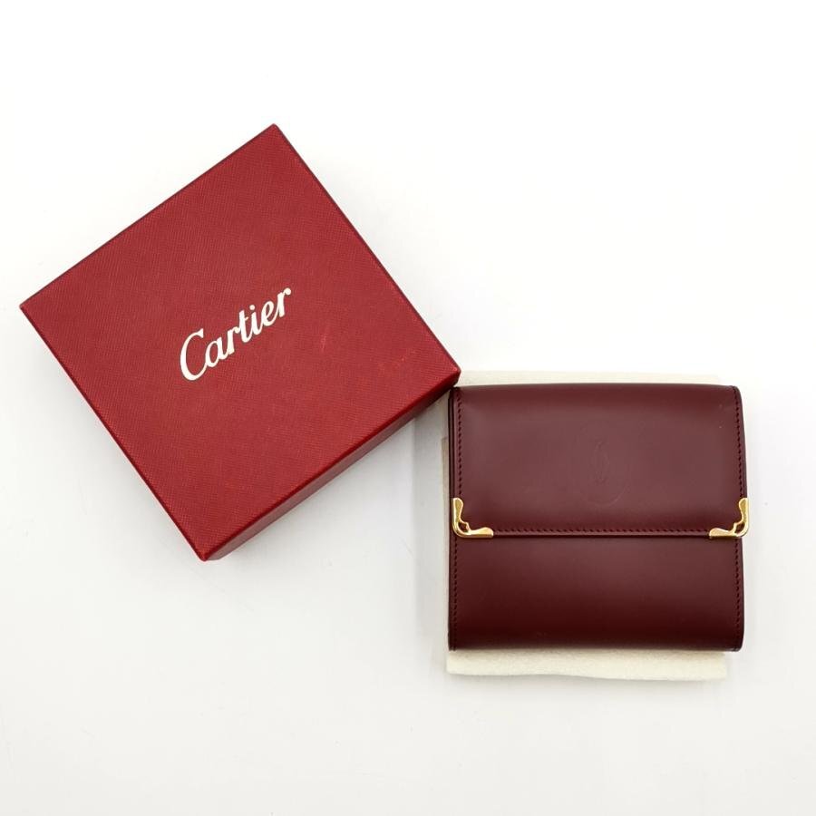 - 送料無料 超美品 カルティエ Catier 財布 三つ折り ミニ財布 マストライン レザー ボルドー系 レディース