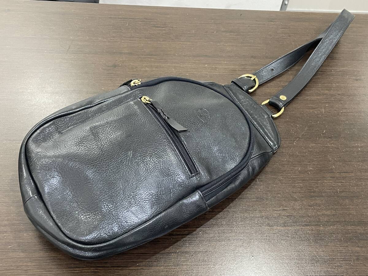 - ★【希少品 本革 レザー ワンショルダーバッグ】IL BISONTE イルビゾンテ ボディバッグ ブラック 黒★美品 良品