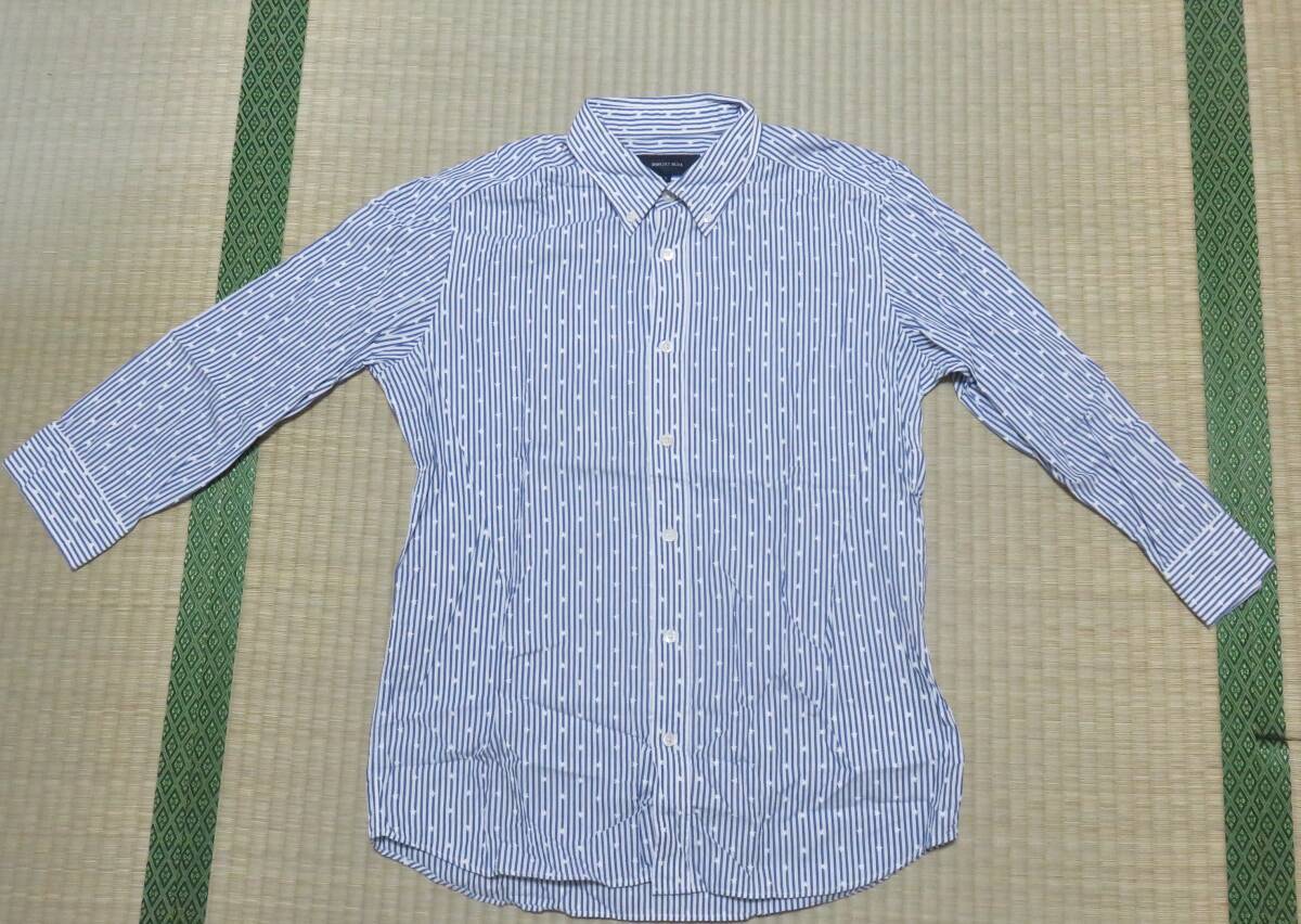 - SHIPS ストライプ7分丈スタープリントシャツ 青 L シップス