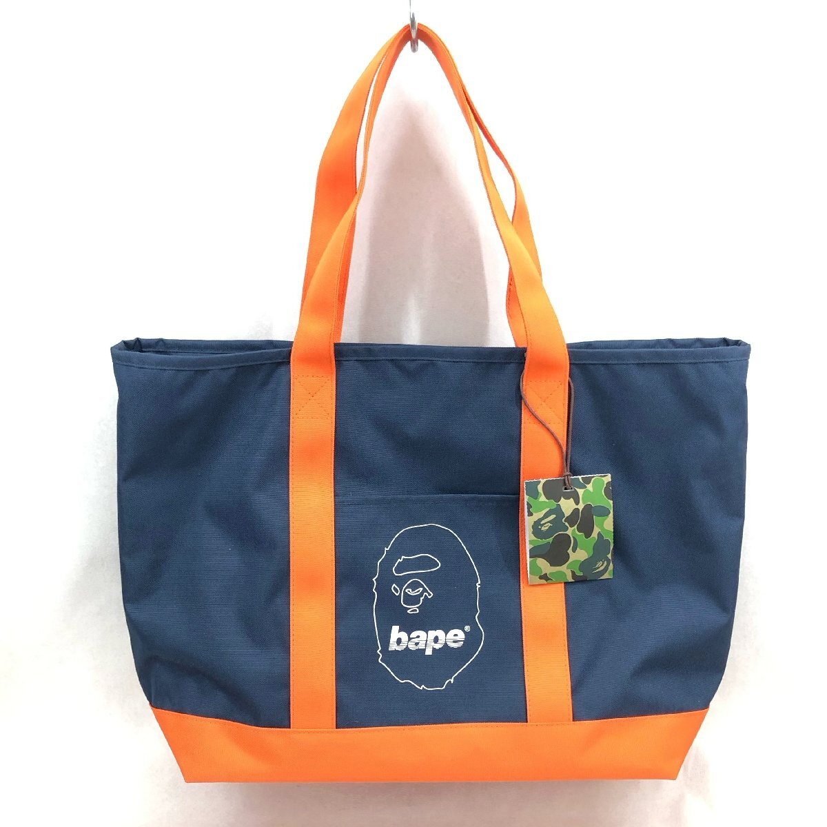 > 未使用に近い A BATHING APE アベイシングエイプ 2025年 福袋 トートバッグ ネイビー オレンジ ビッグフェイス タグ付き