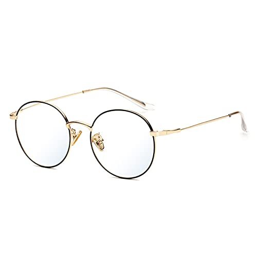 > ゴールドー黒縁 [モエライフ] MOELIFE ブルーライトカットメガネ 伊達 度なし PC オンライン授業 11g超軽量 丸 お