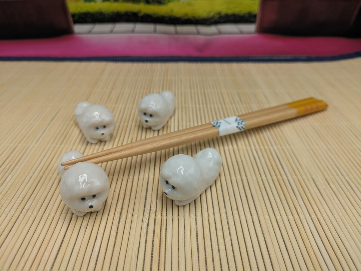 - 陶器製 箸置き 4個セット 犬 ビションフリーゼ 置物 かわいい犬の箸置き