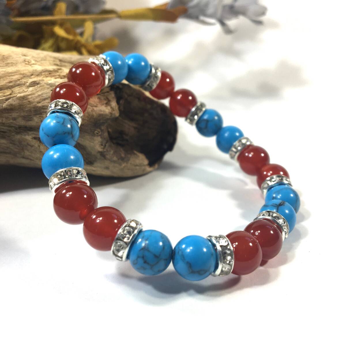 - ターコイズ&赤メノウ パワーストーン ブレスレット シルバー 8mm /開運 浄化 魔除け お守り 成功 繁栄 効果 レディース 通販